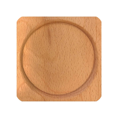 Dessous de verre carré en bois de hêtre avec emplacement rond gravé